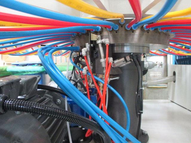AUTO. GUIDE THE CAN FOR AVOID CAN COLLIDE TO RUBBER AND FALL DOWN, MAKE SURE EACH CAN COULD BE DETECT BY SENSOR AND BE EJECTED BY HIGH PRESSURE AIR GUN.